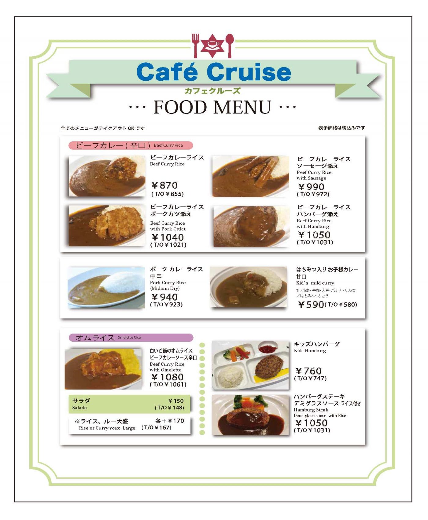 全品テイクアウトできます。